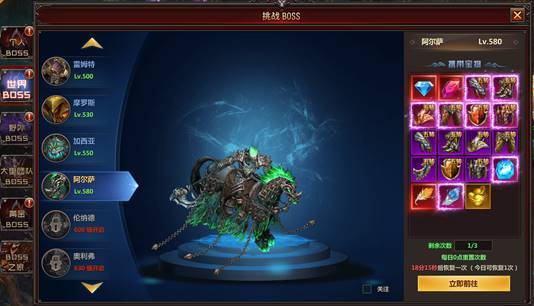 世界首领的等级分布从50级至680级共26个首领,每个首领随着等级提高战力和属性也会增强,击杀首领所掉落的道具奖励也会越丰富。