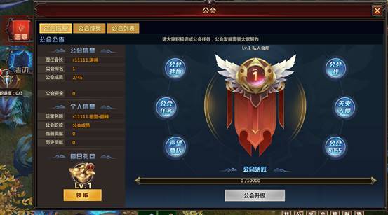 公会是游戏内玩家创建的群体组织,加入一个实力强大的公会,能更好的体验游戏。