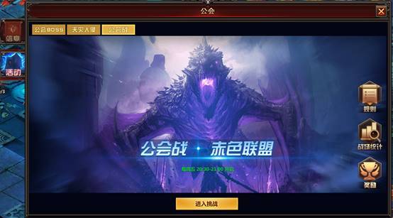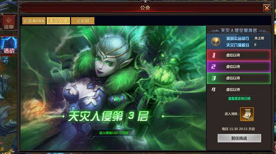 公会活动有公会boss、天灾入侵、公会战以及公会任务(及公会日常任务)