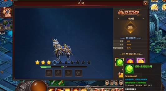 进阶成功后可穿戴坐骑装备并提升坐骑的基本属性。