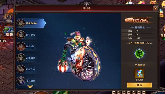 每个坐骑都有相应的皮肤,不同坐骑皮肤激活后可获得不同的角色属性。
